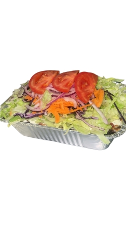 Ijsbergsla, rode kool, wortels, ui, tomaat, augurk, maïs, olijven, feta